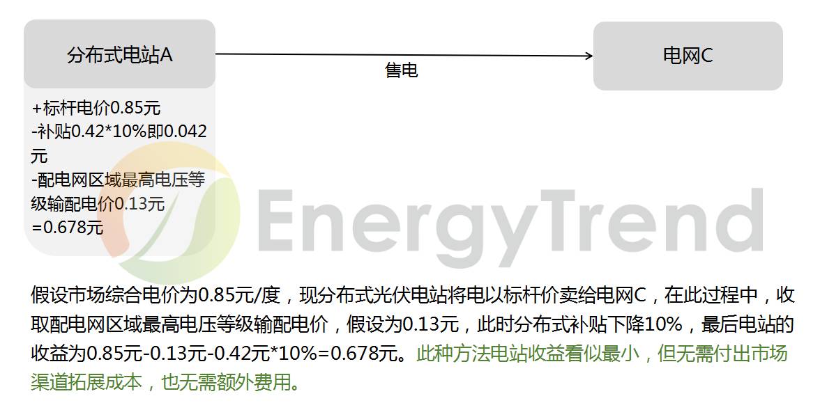 新政規(guī)范分布式電站規(guī)模可達(dá)50MW,此處為“第三類資源區(qū)、不大于20MW”的電站為例分析,其他地區(qū)、“大于20MW、小于50MW”的電站在補(bǔ)貼縮減程度以及配電網(wǎng)區(qū)域最高電壓等級輸配電價(jià)等指標(biāo)上略有不同,但算法一致。
