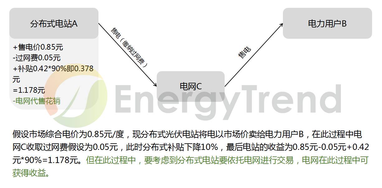 “過網(wǎng)費(fèi)”核定前,暫按電力用戶接入電壓等級對應(yīng)的省級電網(wǎng)公共網(wǎng)絡(luò)輸配電價(jià)(含政策性交叉補(bǔ)貼)扣減分布式發(fā)電市場化交易所涉最高電壓等級的輸配電價(jià)。