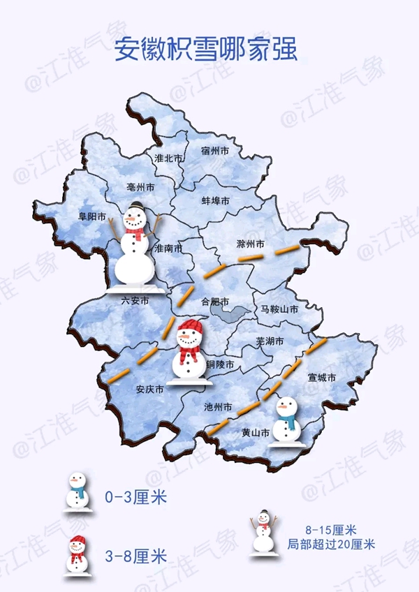 從安徽省氣象臺(tái)獲悉,3日夜里至4日(今天),安徽省出現(xiàn)了今年入冬以來范圍最大、強(qiáng)度最強(qiáng)的降雪過程。其中,淮河以北、江淮之間北部和山區(qū)有大雪到暴雪,局部大暴雪。期間最大積雪深度:阜陽、六安、蚌埠、淮南、宿州南部、亳州南部、合肥北部、滁州北部和安慶西北部10~20厘米,局部超過30厘米;亳州北部、淮北和宿州北部8~15厘米。