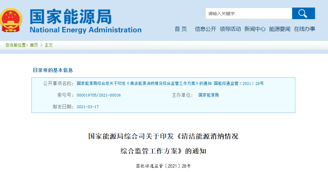剛剛,國家能源局印發(fā)關(guān)于《清潔能源消納情況綜合監(jiān)管工作方案》的通知,下附原文: