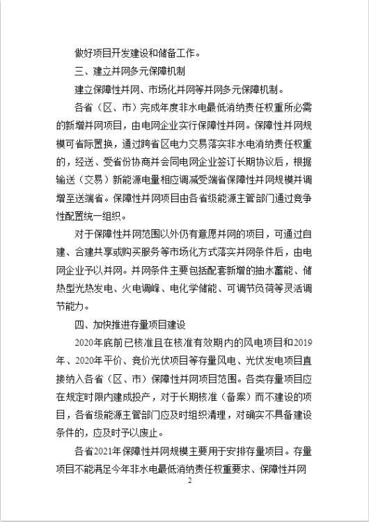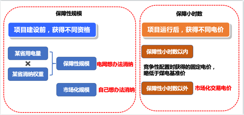1、保障性規(guī)模在項目開發(fā)階段,規(guī)模指標(biāo)分配過程中,依據(jù)各省消納權(quán)重和發(fā)電量計算出來的規(guī)模,在并網(wǎng)時享受優(yōu)先待遇;是每年各省光伏、風(fēng)電項目發(fā)展規(guī)模的下限。投資企業(yè)需要通過競爭性配置獲得。因此,保障性規(guī)模影響的是項目指標(biāo)分配,即優(yōu)先消納權(quán)。