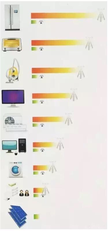 工頻下光伏發(fā)電系統(tǒng)與常用家用電器電磁環(huán)境測試結(jié)果對(duì)比,如下圖: