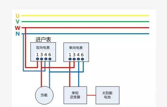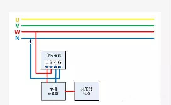 圖7:余電上網(wǎng)電表接入方式(光伏220V,負(fù)載220V)