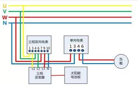 圖8:余電上網(wǎng)電表接入方式(光伏380V,負(fù)載220V)