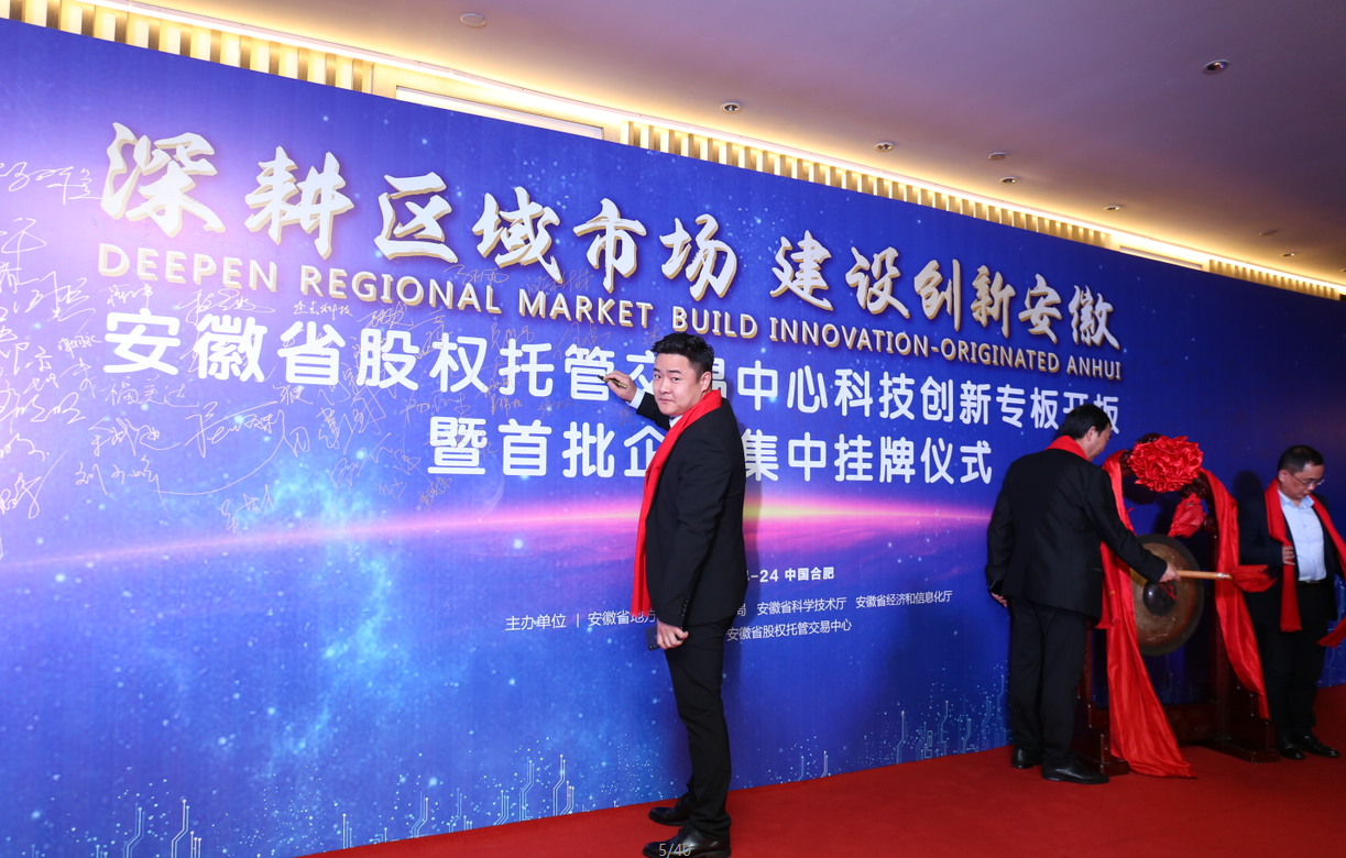 安徽省區(qū)域性股權(quán)市場(chǎng)科技專板開板暨集中掛牌會(huì)議儀式正式開始,安徽省地方金融監(jiān)督管理局副局長(zhǎng)程鋼、安徽省科技廳副廳長(zhǎng)羅平、安徽省經(jīng)濟(jì)和信息化廳副廳長(zhǎng)吳韋人、安徽省財(cái)政廳副廳長(zhǎng)王召遠(yuǎn)、安徽省市場(chǎng)監(jiān)督管理局副局長(zhǎng)張志宏等省直及股東單位領(lǐng)導(dǎo)出席了本次會(huì)議。